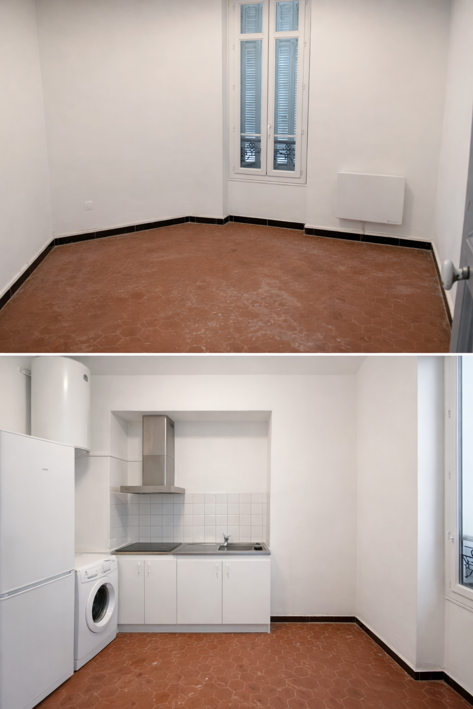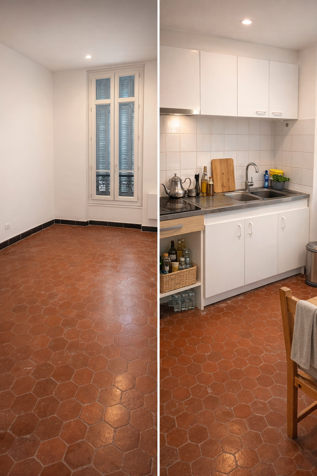 Avec belle hauteur sous plafond , des sols en tomettes qui apporte du charme, fenétres double vitrage battant offrant une bonne luminosité
